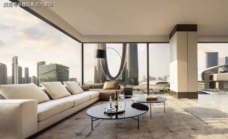整体营造出现代轻奢度假氛围,以FENDI CASA渗透于空间各个细节之中。88方的超大客餐厅,270度瞰景视野,19米的双面采光,客厅都是L型采光的“无柱转角落地玻璃厅”。每一场轻歌曼舞的派对,背景都带着“H”标的奥体地标群。