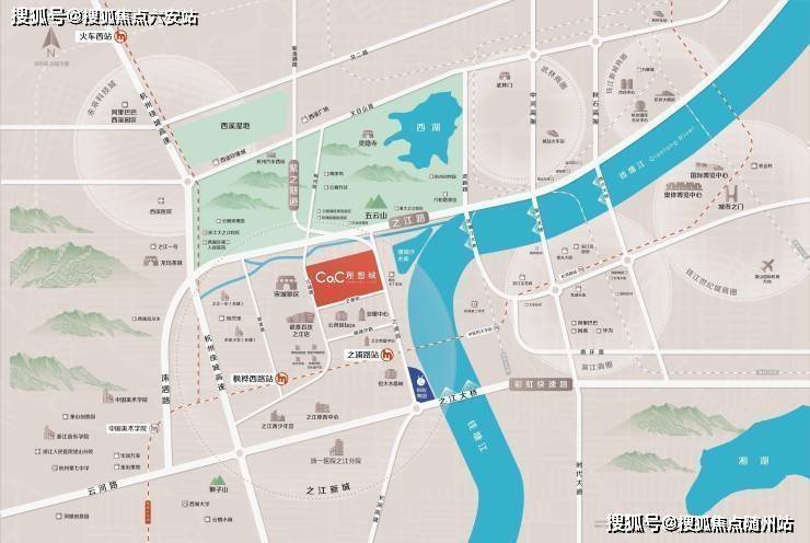 CoC理想城位于杭州市西湖区,周边临近十大新城之一之江新城、规划商务区CBD、万亿独角兽蚂蚁集团,并毗邻年客流1000万+宋城旅游区、西湖景区、龙坞茶镇、钱塘江等丰富的自然人文条件,区位优势明显,坐享多重高定位发展利好。