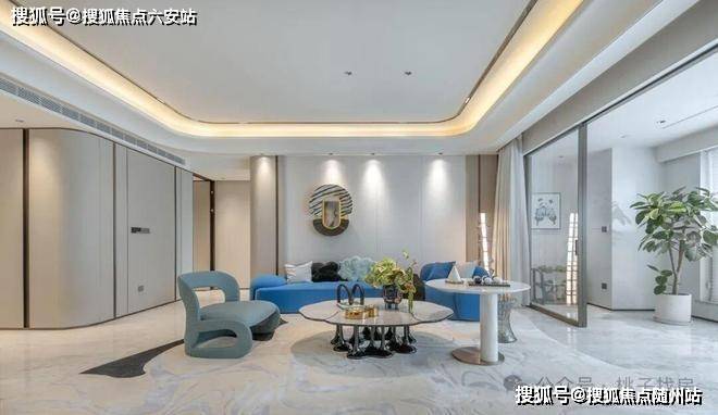 客厅选用芬迪白奢石作为背景墙,搭配金属框线,加强空间价值感。