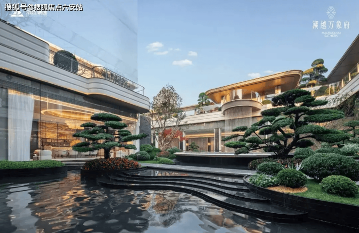 树阵:六棵变异银海枣,滨江标志性热带风情,价值约100万。配合曲面波浪景墙,每一次归家都是度假感。