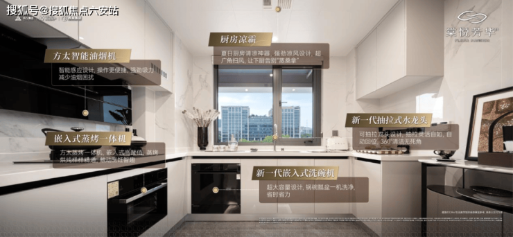 不仅搭载了全屋智能、精装三大件(新风、地暖、中央空调),厨房还配齐了方太三件套(侧式吸油烟机、三眼灶、洗碗机),还有蒸烤一体机、抽拉式水龙头、凉霸和一整面橱柜。