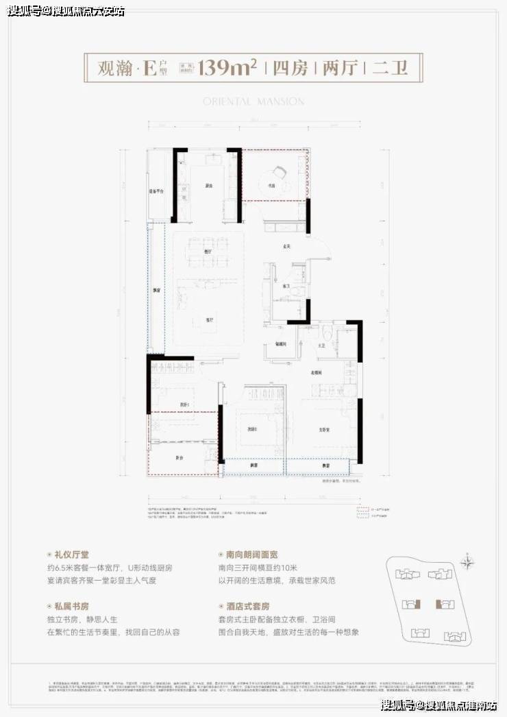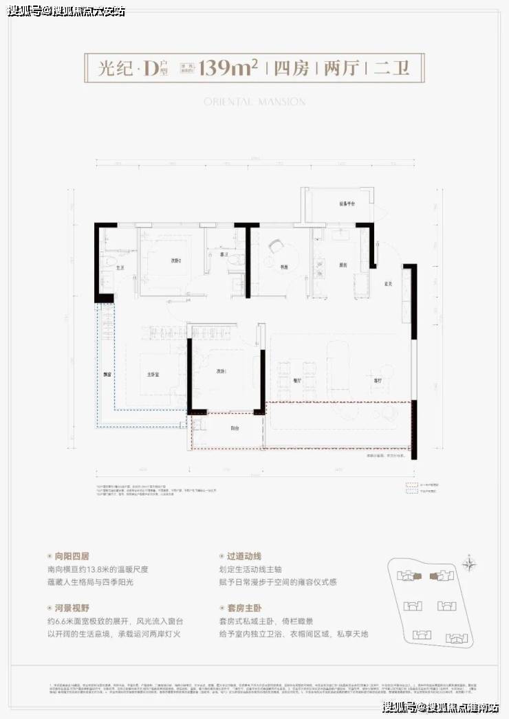 而约139㎡四居室则更显奢华,横版户型以四开间朝南、L型全景飘窗主卧和双联阳台,打造出“运河观景舱”的既视感;竖版则创新10米南向三开间设计,主卧配备3.5米飘窗与6.1米观景宽幕,仿佛将整条运河的壮阔美景都收入眼底。
