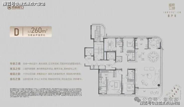漆砚260㎡户型:户型参考漆砚制作方式,以“玉德”显质地,以“金声”隐赞誉,主卧吊顶还原砚台之形,以漆砚般闪耀琢序空间。