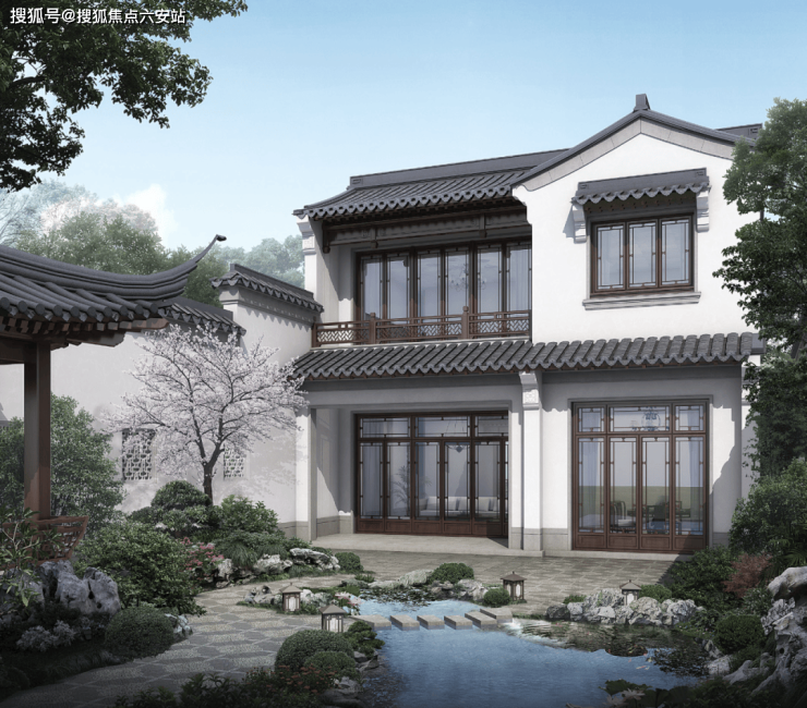 建筑设计深谙中式居住哲学,首创“ 三进院落 ”格局——前庭迎客、中庭会友、下沉庭院私享,层层递进的空间序列,既保留传统合院的仪式感,又通过开放式布局提升居住舒适度。粉墙黛瓦的立面、雕花格栅的细节、坡顶飞檐的轮廓,每一处都复刻江南建筑的雅致,却又以现代工艺解决传统合院的防潮、采光痛点,实现“形神兼备”的新中式美学。