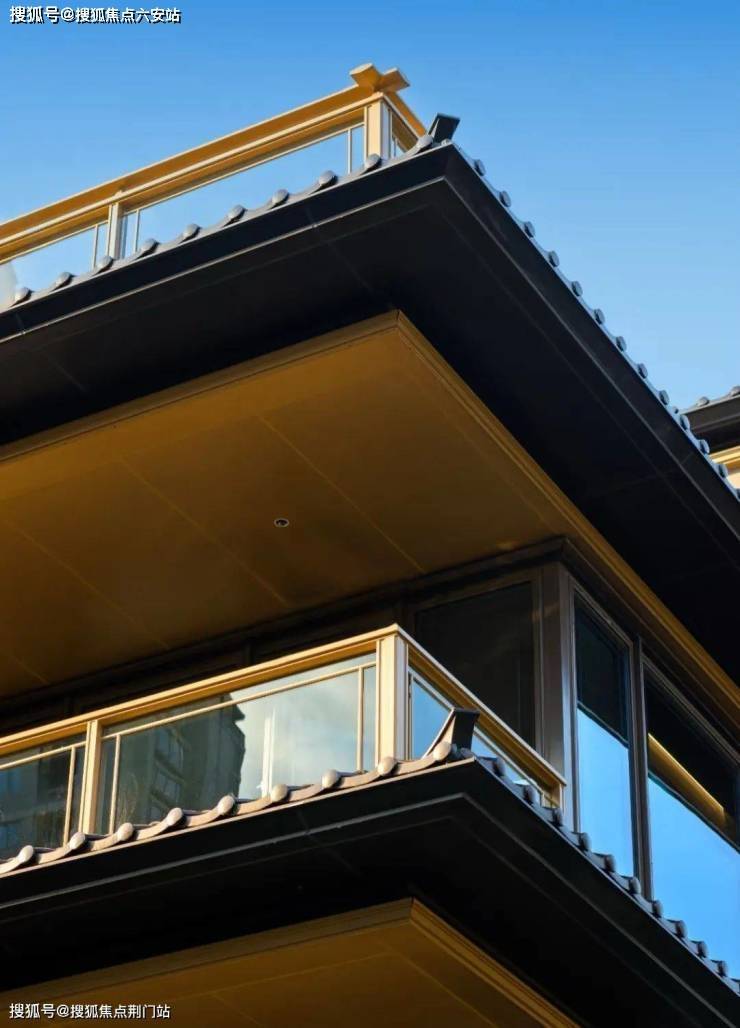 三重屋檐,代表天地人融合的东方宫殿最高等级,上檐、外檐、下檐三重结构,现代立面,以铝板、格栅、石材、瓦墙型材、玻璃等现代型材,彰显传世之宅的独特气度。