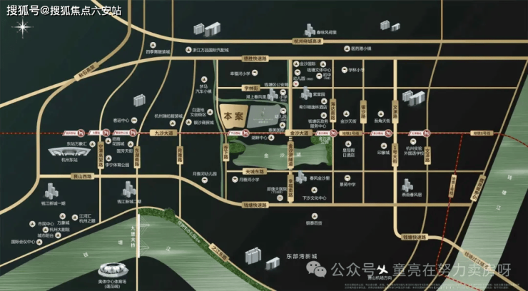 项目地处金沙湖CBD核心区,坐拥杭州东部城市级CBD资源,紧邻金沙湖大剧院、杭州客运中心,承接钱江新城二期发展红利,板块能级持续提升。