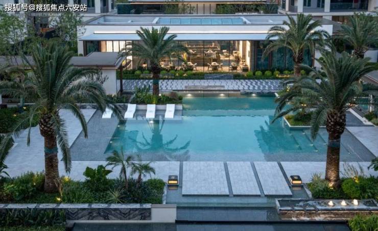 园林中心还嵌着带下沉卡座的海岛度假水池,有一抹深邃的蓝……