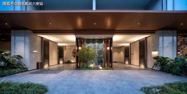 你甚至数不清,它究竟藏了多少重水的章法:大门前有“聚水生财”的雕塑喷泉,主入口有数米高的石墙瀑布。穿过风雨连廊,漂浮着约430㎡镜面水院。