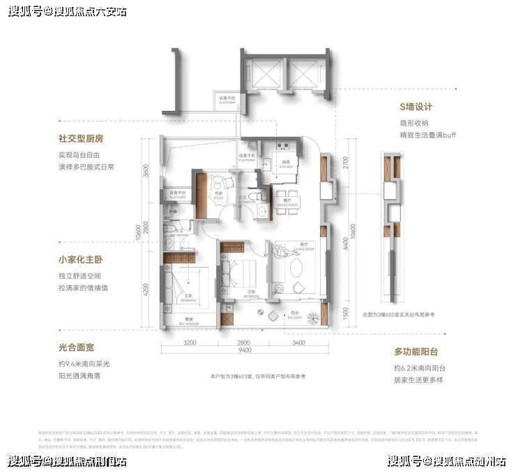 户型方正,没什么浪费面积,虽然是中间套设计,但做到了全明户型,通风效果好;南向三开间,双联阳台+飘窗,南向采光充足,阳光满堂;超配S墙,隐藏收纳柜,让小家越住越大,可以说杭州少见。