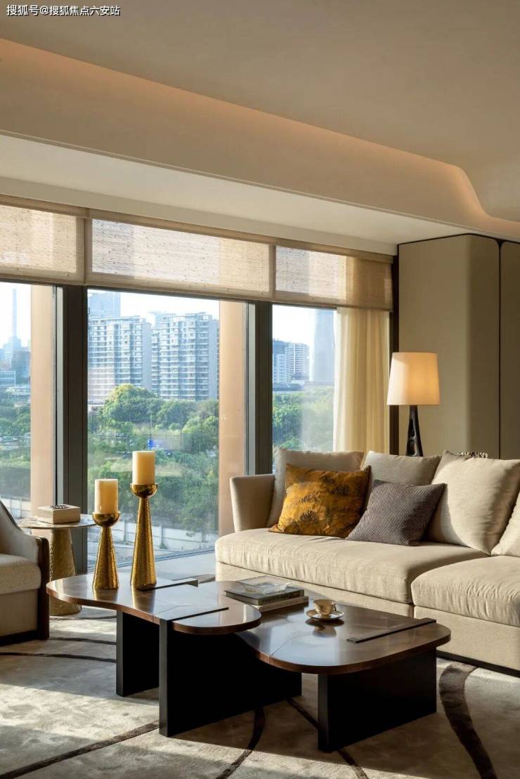 更具突破性的是“无反坎设计”的幕墙系统,实现玻璃与地面无缝衔接,极大扩展了室内视野和采光面,让钱塘江景与城市风光成为家中流动的背景画。