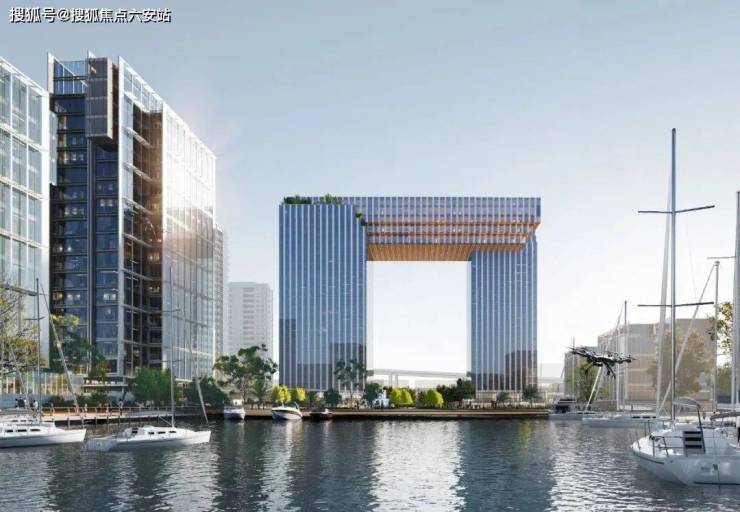 这是湾流800的天赋所在。其所处的运河湾,是运河之源,也是港湾所在。湾区江水静流,风吹起皱。三艘漕运木船一字并停,岸上工业遗存的龙门吊(规划)下,运河游艇码头正在加速建设。