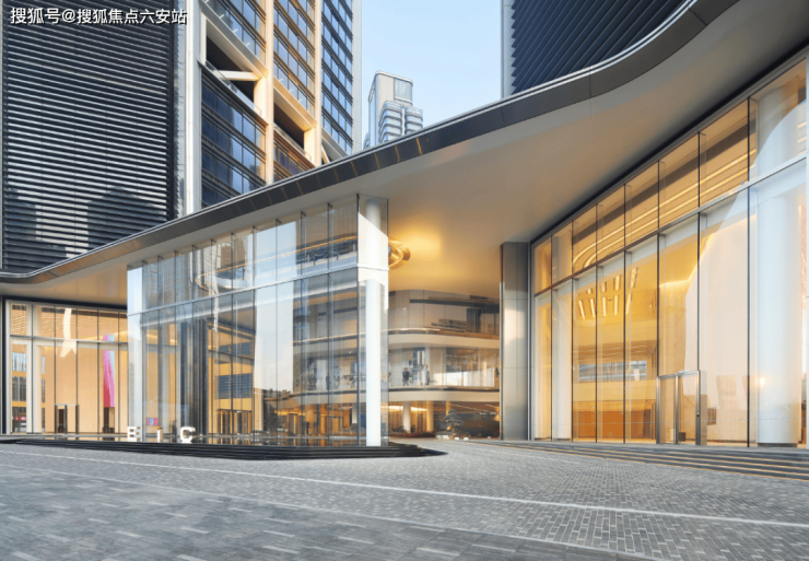 T1、T6、T7三栋塔楼递阶排布,独巨匠心的270度弧形立面,超大尺度水晶玻璃幕墙,与繁华城市和壮观江景相辉映。标准层幕墙采用双夹胶4片超白玻璃配置,视野无垠,美景尽揽。