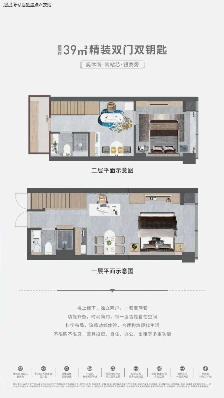 4. 臻稀小户低总价:精装双门双钥匙,层高约4.5米,买一层享两层,小面积低总价、不限购不限贷,兼具投资、自住、办公、出租、养老多重功能。