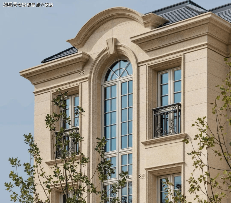 合院汲取法式风格的严谨比例美学与精炼装饰语言设计,团队以海岛别墅为灵感,将卢浮宫玻璃金字塔的现代美学融入法式联排的立面语言——金属雕花、石材基座与弧形玻璃幕墙碰撞出古典与现代的张力,而270°转角无柱设计搭配LOW-E中空玻璃,则让建筑成为“会呼吸的光影容器”。