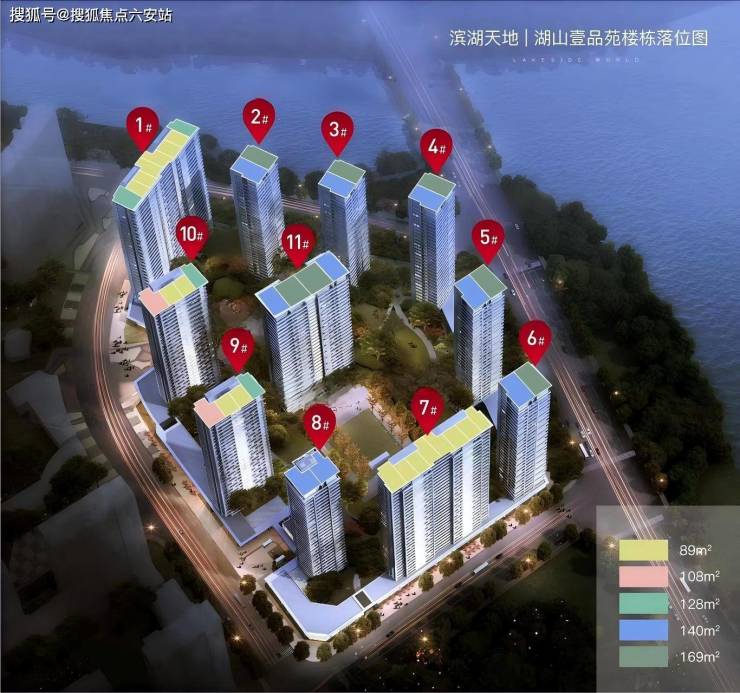 🏗️产品:建面约89-169㎡全能户型,89㎡三房两卫设计,11㎡南向双阳台+270°空中庭院,140㎡户型享跑道式阳台+U型厨房,169㎡空中花园私享湖景。