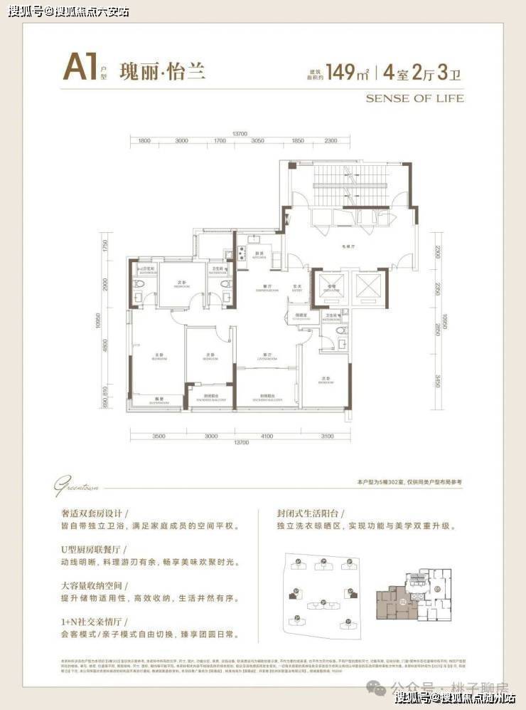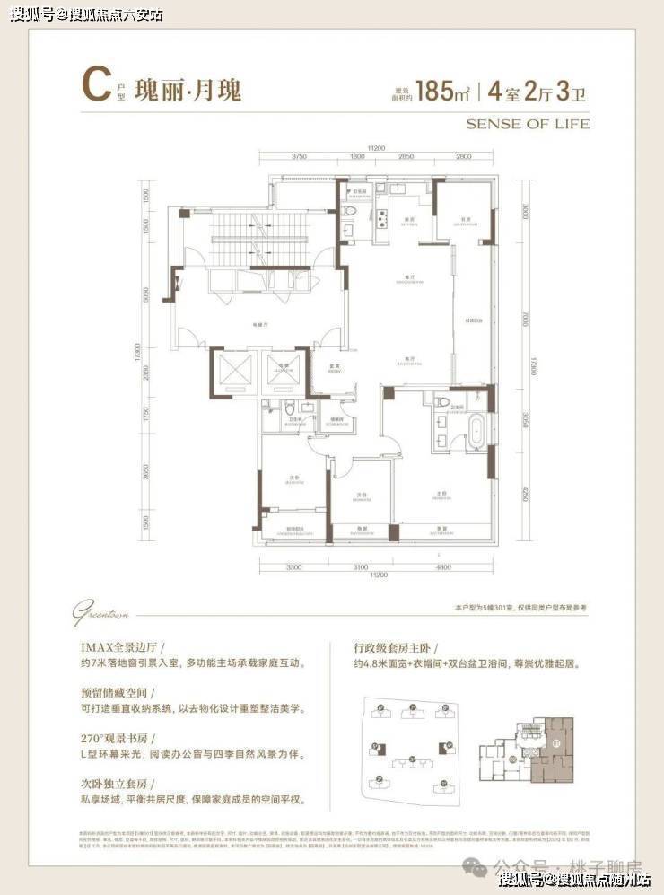 以149㎡四房两厅三卫户型为例,实得率约85%,四开间朝南设计让居住空间更加宽敞。170㎡户型实得率高达93%,双阳台设计让居住体验更加宜人。185㎡户型具备双套房设计,兼顾家人私密性与舒适度,适合多代同堂家庭。