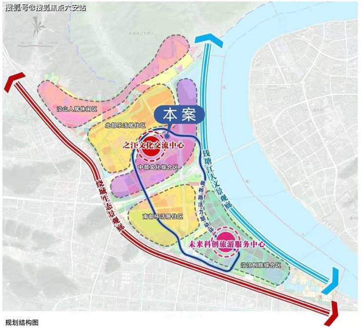 2023年7月初《之江度假区单元详细规划(草案)》公布,未来之江板块将沿江形成“两心、两廊、一环、五区”的规划结构。