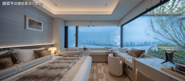 当你立于客厅,窗外的景色仿佛被装入一个巨大的天然画框,是传统户型无法赋予的奢侈。更难得的是,主卧采用270°转角飘窗设计,不仅让采光达到极致,未来还有可能实现"躺在床上观江景"的生活想象,做到了真正意义上的景观私有化。