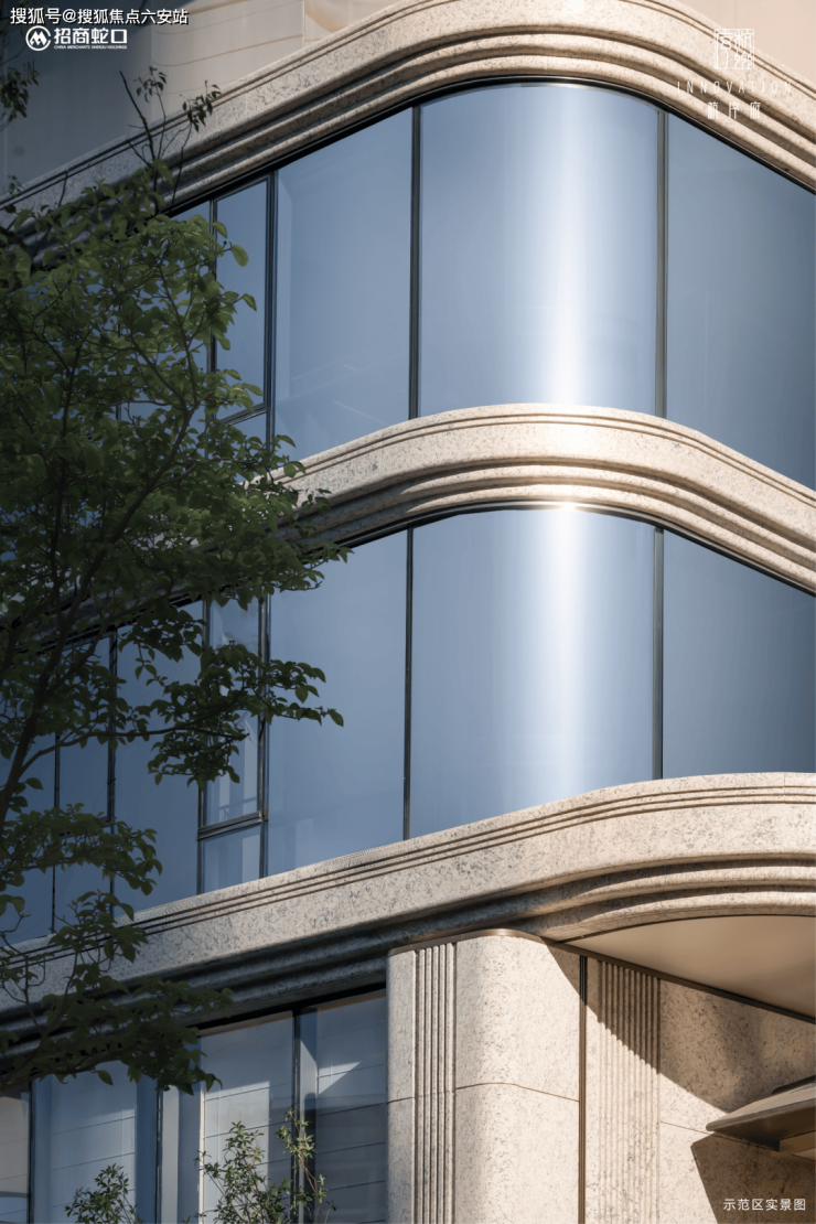 建筑高层立面精选白世茂石材、宽阔玻璃与铝板,打造出一场双曲面石材与弧面玻璃的视觉魔法盛宴。区别于流行的“全面屏”设计,该立面采用石材勾勒水平线条,转角处巧妙转化为四层倒角的大圆弧,宛如波涛汹涌的雪浪,层层递进,直至屋顶——其设计之巧妙,远胜弧形铝板。不仅转角处的落地玻璃窗采用弧形设计,连阳台的玻璃栏板亦然。更独具匠心的是,银色风帆式幕墙飘板,灵感源自“涌动的江潮”,巧妙融合钱江潮水的激情与江南丝绸的柔美,刚柔并济,相得益彰。