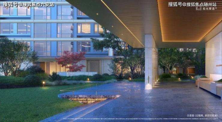 “一轴四境”的景观格局,将大堂、水院、花园、草坪等一一串联,绿洲与水系相伴,归家之路如桃源之境。板块第一个半封闭式架空层,兼容瑜伽、健身、亲子、阅读等功能,