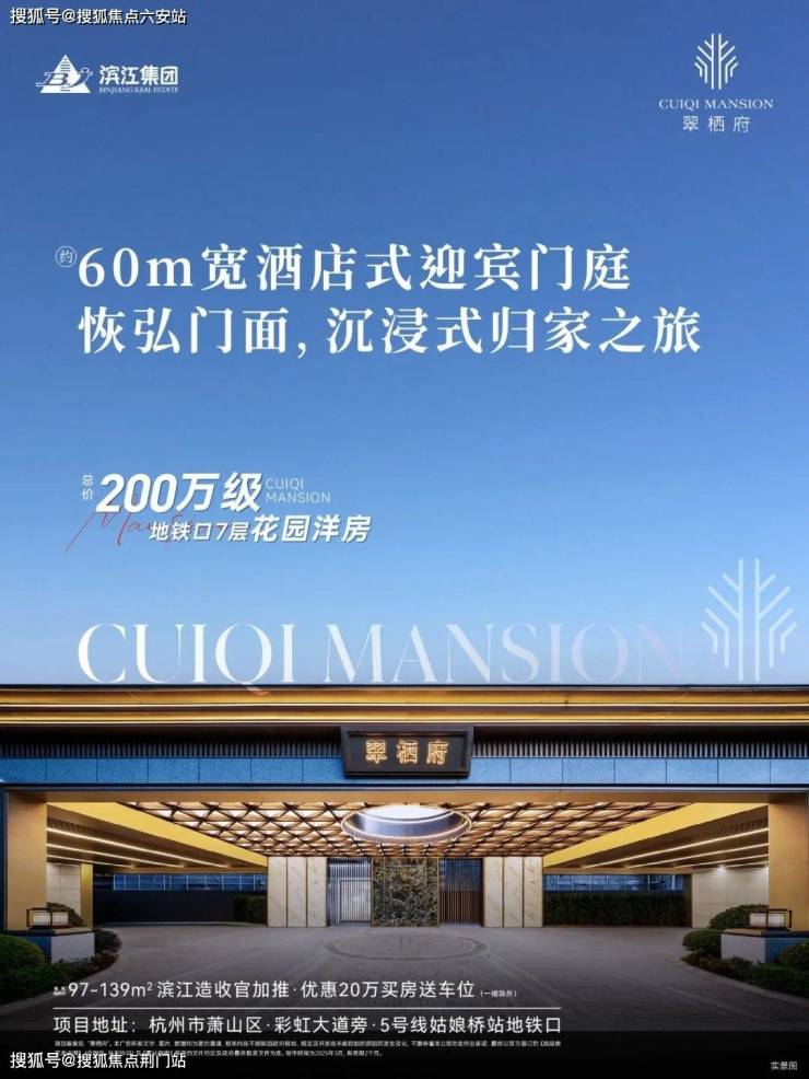 2025滨江翠栖府千万别错过了(一文读懂·杭州萧山纯洋房滨江翠栖府优缺点)滨江翠栖府/价格/户型