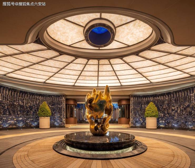 大堂室内璀璨的穹顶花窗,是从西湖历史建筑中复刻而来的。他们还让同样璀璨的花窗,浮现在大堂背后的花园里,这需要室内设计与景观设计的协同。于是,大堂背后的中轴花园,仿佛是大堂外那座庭院的优美镜像,无穷的对称与镜像,映射着你内心的无穷宇宙。