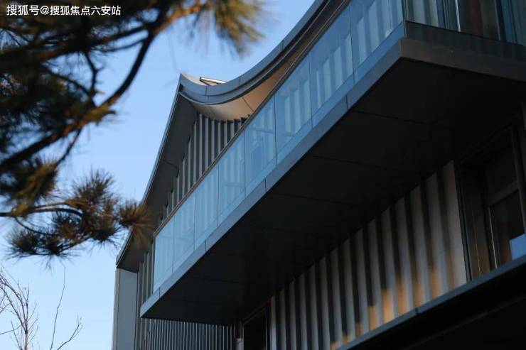 涵雲軒的建筑,吸收江南院落的坡屋顶、山水景墙等中式风骨,同时金属屋面、大面积玻璃幕墙与美国白金石的创新加入,让整个建筑群多了几分国际感。