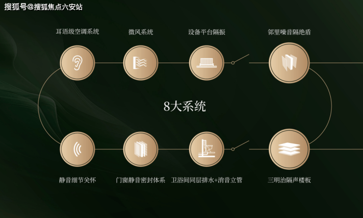 为了对抗噪音,项目采用了“8维静音系统”,这不仅是加厚隔音设备,而是从设备声、排水声、门窗外的噪音到邻里间的噪音的全维度降噪。