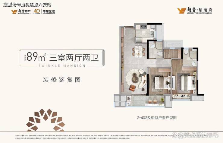 · 户户双联阳台:89㎡实现三室两厅两卫,6.5米南向阳台引景入室