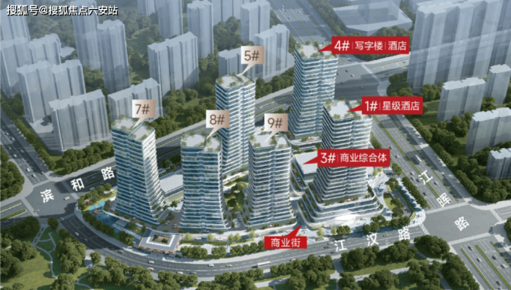 项目位于浙江省杭州市滨江区,滨河路与江汉路交叉口东侧,共由6幢不规则建筑体环抱组成,总建筑面积22万㎡。
