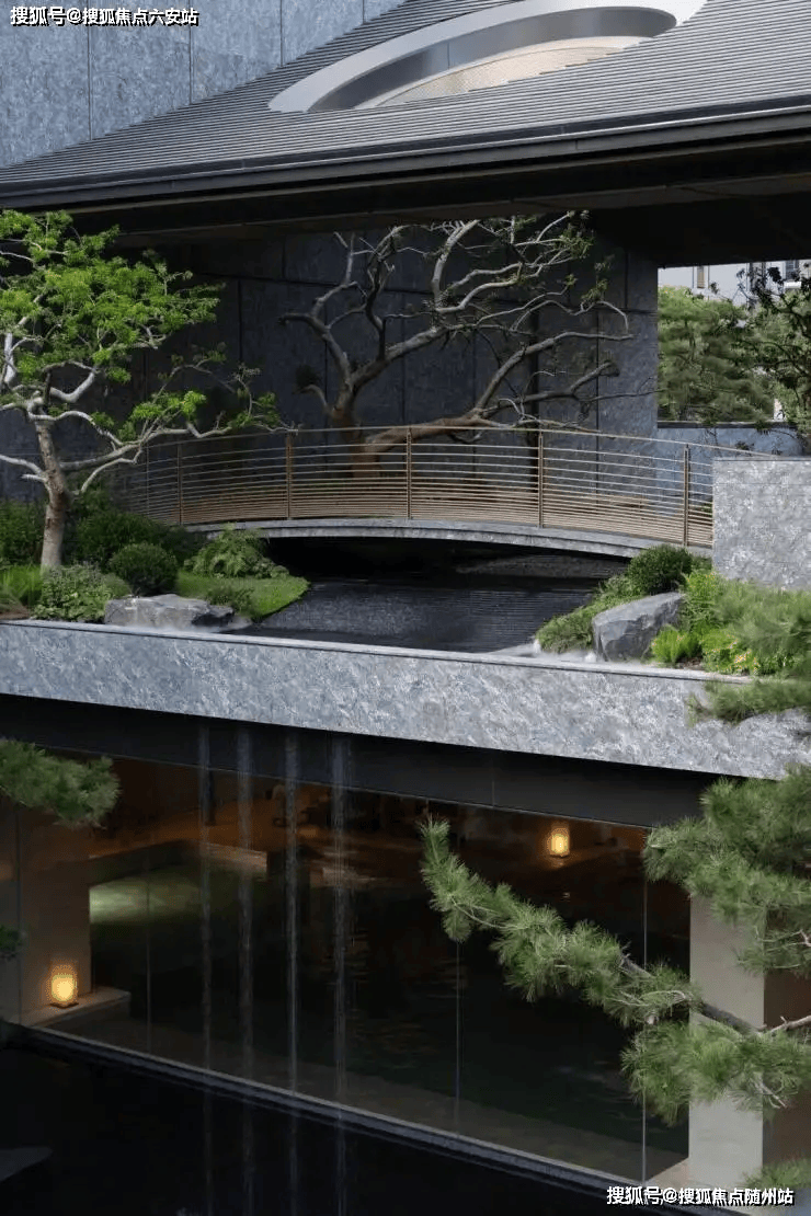 下沉庭院:落地窗引山石松影入室,如游山水画卷;