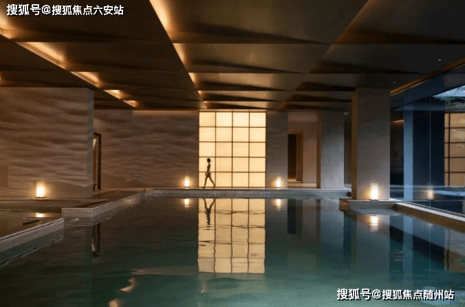 大尺度落地窗,与下沉庭院无缝连接,将窗外的山石、松影与飞瀑引入室内。每一次畅游,仿佛流动于山水长卷之中。整个泳池空间全部采用“香槟金”马赛克铺装,加上度假风情的休憩区,以及疗愈按摩系统,酒店式尊崇的舒适感扑面而来。