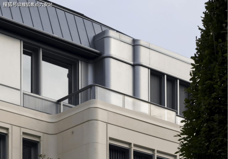建筑立面采用经典三段式构图,采用米色石材,以及暖色仿石铝板搭配的形式,在转角及细部以精细的圆弧设计,赋予建筑柔和感,同时以景泰蓝奢石线条的点缀,打造当代摩登海派建筑美学。