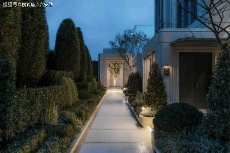 归家礼序:整体规划中轴对称,通过双侧柱廊、中心花园与主入口的弧形穹顶、奢华石材景墙,营造强烈的序列感与尊崇归家体验。