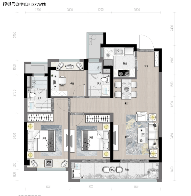 C户型,98㎡,3室2厅2卫