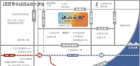 教育资源方面,江山云樾府门口就是云帆幼儿园,直线约400米范围内有云帆小学、杭州市基础教育研究室附属学校、 一所36班小学(在建)、启源中学,真正实现了“12年全步行教育链”。