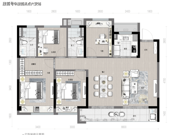 D户型,118㎡,4室2厅2卫。