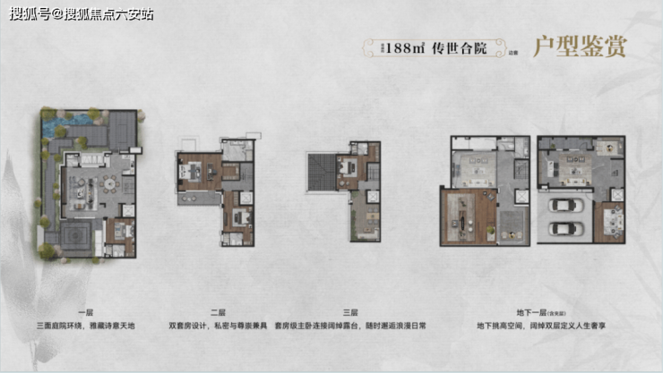 产品类型:主推建面约99~188㎡的院墅产品,实际使用面积达270~520㎡(得房率超150%),包含地上2~3层+地下2层设计,赠送花园面积50~80㎡不等。