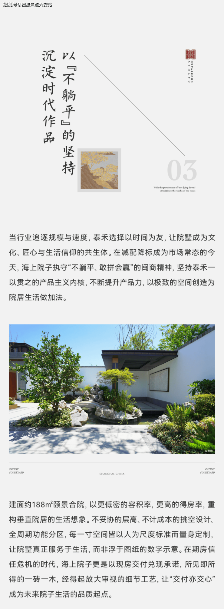 以二十载营造经验,携十大专利工法开创行业知识产权保护先河。海上院子作为献礼上海的文化地标,以匠心工艺与人文底蕴,重释中式院居的时代价值。