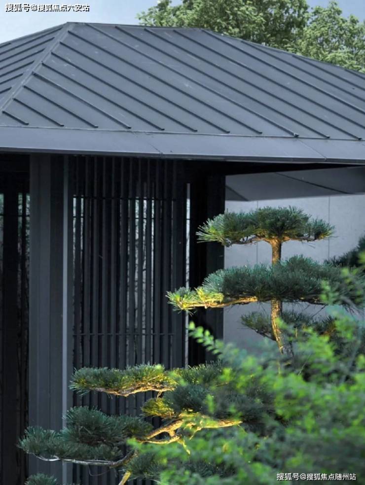 根据对室外景观的需求,墙窗组合自由,仿石涂料、铝合金与大玻璃幕墙组合,以铝板和瓦楞板取代木饰面肌理,保留中式形制传统韵味的同时,外部整体呈现出优雅高端的当代美学。