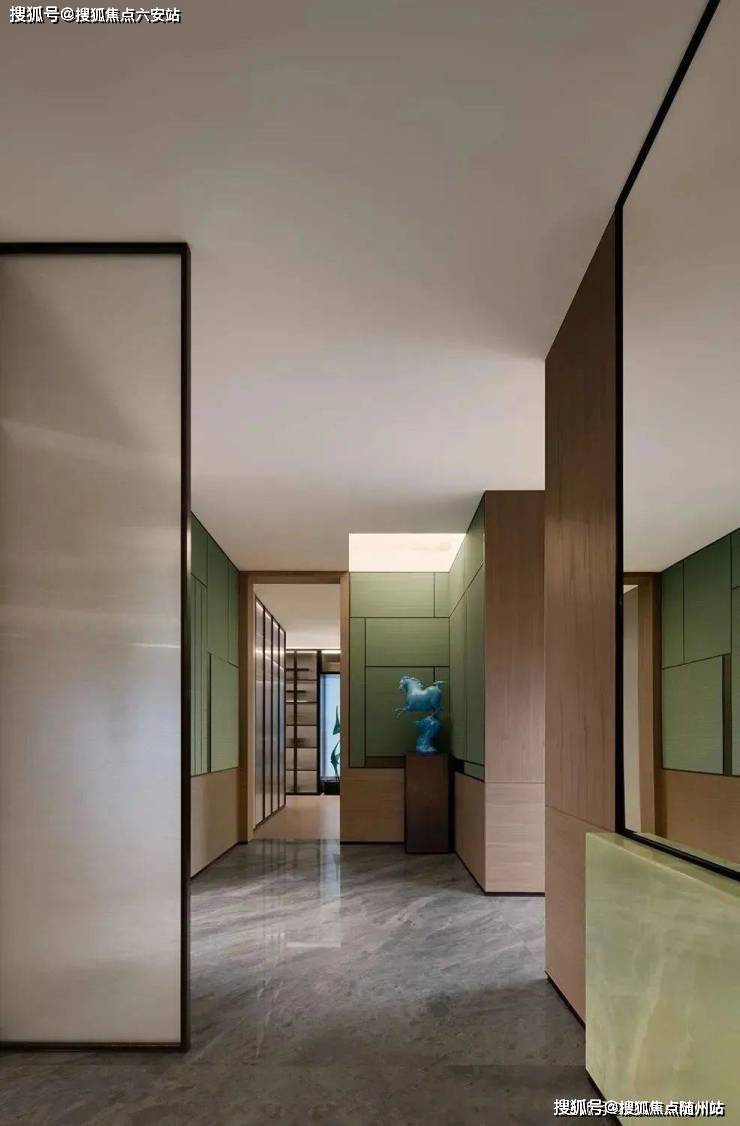 专属门厅艺廊:电梯厅延伸至家的过渡空间,如艺廊般放慢归家情绪;