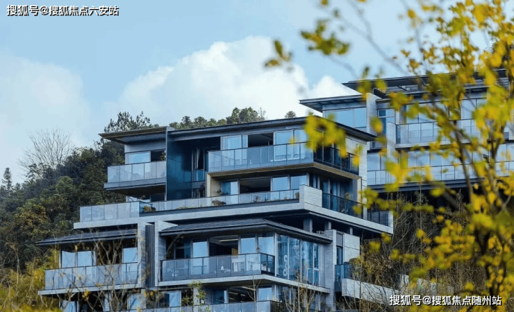 建筑以灰色人造石材、铝板与大面玻璃幕墙构筑,如“山间水晶盒”般折射环境光影,玻璃占比超60%,270°环景露台与星空露台打破室内外界限。每栋建筑依山就势定制朝向,实现“每一栋皆定制,每一境皆不同”的独特视野。