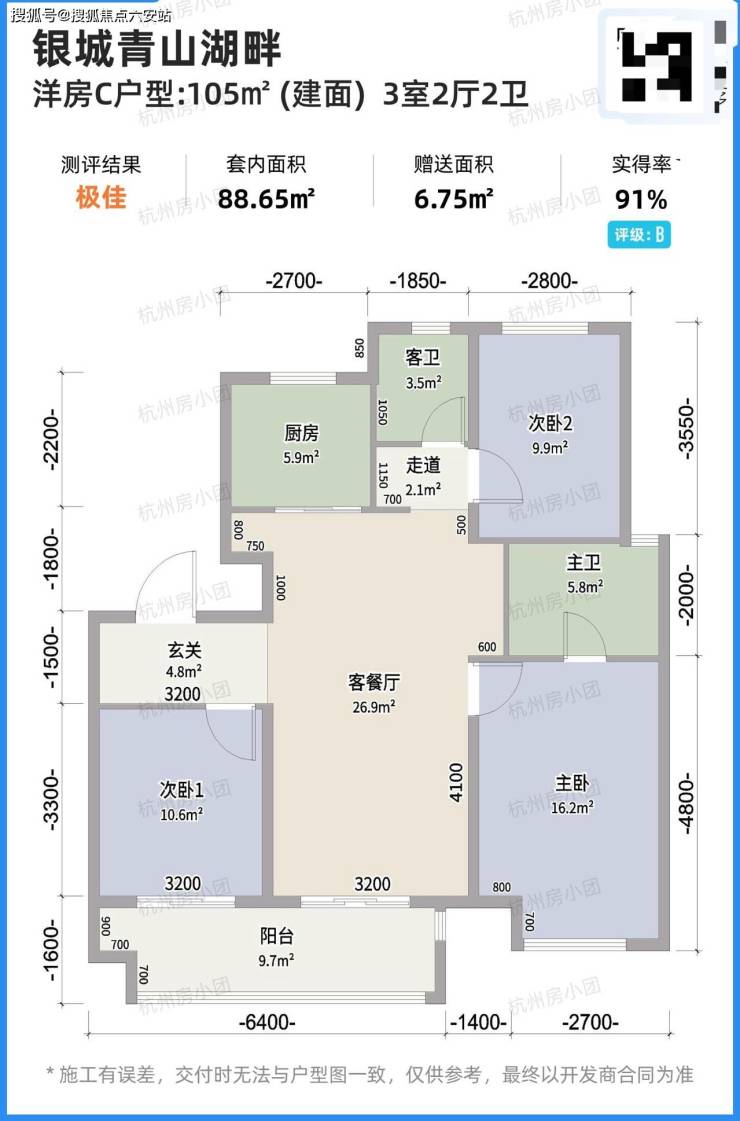 首付门槛约15%,对于刚需和改善客户都很友好。我算了一下,一套105㎡的三房,总价大概100万出头,首付15万左右就能上车,在杭州这样的城市真的很难得!