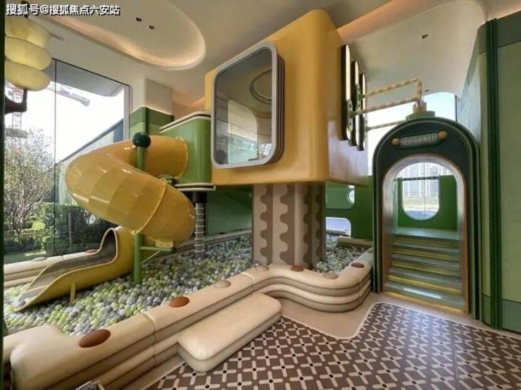 6号楼则是把整个架空层打造成2个主题童玩空间。一边以游玩设施为主,包括滑梯、玩具等,适合小朋友玩耍;