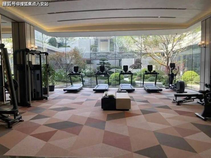 园区内配有下沉式庭院和会所,会所内设置了多个功能空间,除了健身房、瑜伽室、恒温泳池这些空间外,咏舟府还做了一个网球室,对运动爱好者十分友好。