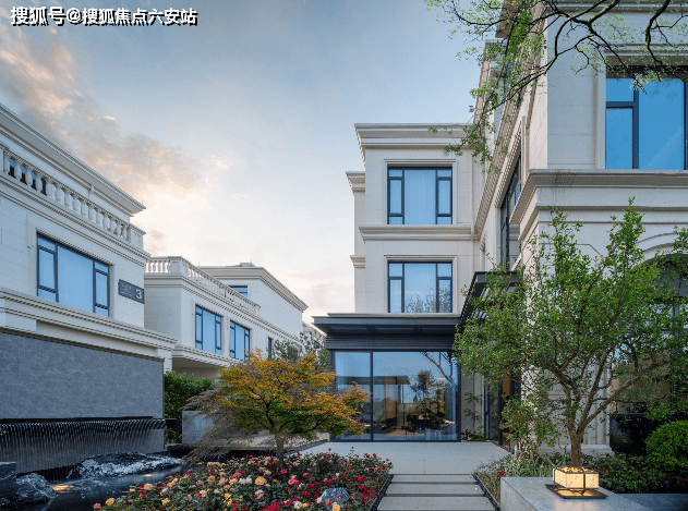 四国风情建筑:融合民国、法式、英式、新古典风格,外立面采用石材、真石漆与金属线条。