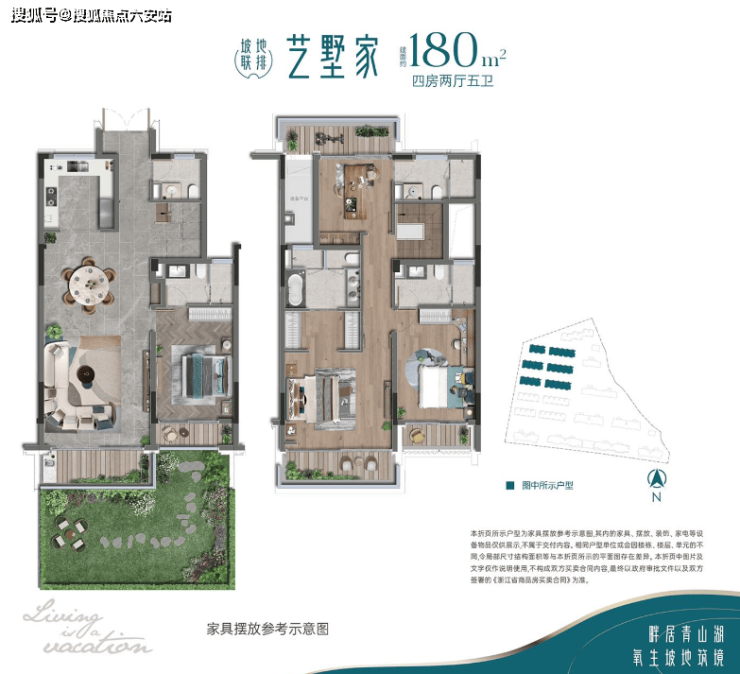 180㎡四房:A户型,单层落地面积达90㎡,私享湖山景致