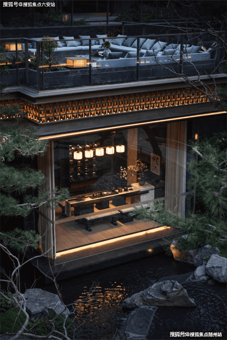 潺潺流水映照着婆娑树影,挺拔树姿为这片空间注入向上的生机,纵向延伸出无限的视觉张力。这座下沉庭院,不仅拉近了建筑与自然的情感共鸣,更使室内与景观紧密相连、和谐相融。每一扇窗户,都犹如框中的一幅生动山水画。