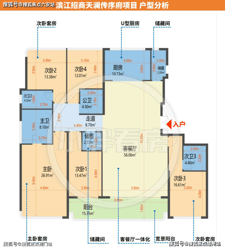 1、这款是南向阳台+南向双套房,背面也有个带独卫的套房,主卧带有衣帽间,南次卧阳台和客厅相连接,这样晾晒的隐私性比较好,从阳台过去也较为方便,不用从次卧进。