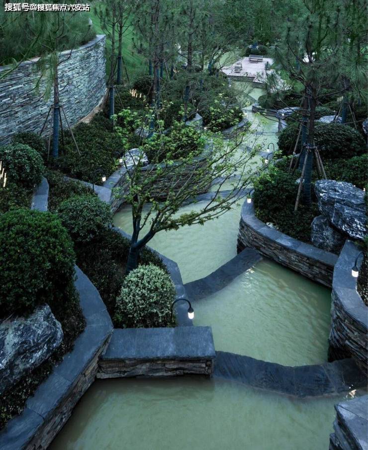 整个项目由“三脉会两谷”的势态构成,两座湖泊掩映、三面密林环抱、山涧溪流穿过。园区内规划有“一园、一轴、五享、五心、六雲”,打造了一处世外桃源之境。